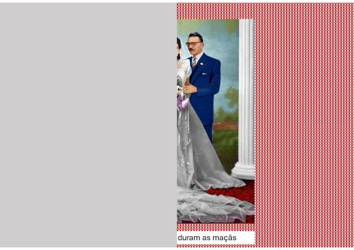 Apresenta imagens do projeto Quanto Tempo Duram as Maçãs?, que investiga memórias, ausências e silêncios em histórias familiares através da reconstituição visual de um casamento de conveniência nos anos 1950 no Nordeste brasileiro.