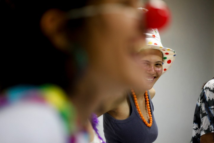 A oficina foi permeada por toques amistosos e entreolhares constantes. Todos se abraçam, apertam as mãos, fazem caretas, dão gritos e risadas. Uma terapia. Relaxados, de olhos vendados, levados ao estado de meditação pela voz de Ricardo, todos foram convidados a se transportar a uma floresta, enquanto escutavam as palavras gentis: