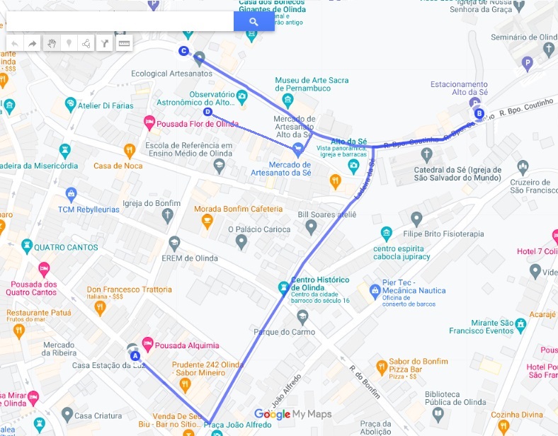 Vamos nos encontrar às 8h30, na Casa Estação da Luz (Rua Prudente de Morais, 313, Carmo). Precisamos ser pontuais para aproveitar o passeio. Informamos que o roteiro planejado pode sofrer alguma alteração, por exemplo, por questões climáticas. Mas fizemos um mapa para vocês terem uma ideia das distâncias que vamos percorrer (acrescentamos a última parada na imagem abaixo porque o endereço ainda não aparece no Google Maps). Recomendamos o uso de roupas confortáveis.
