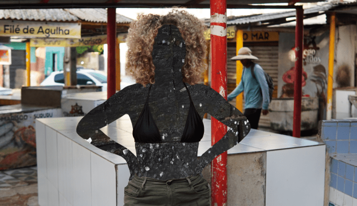 O trabalho parte da fotografia como base para uma investigação poética sobre o corpo, o tempo e o silêncio. Em constante trânsito entre linguagens, Retrato Oco pode ser exibido como série fotográfica, videoprojeção ou instalação multimídia. Cada retrato é ambientado em cenários diversos – mercados, praças, vales ou interiores domésticos – sempre envoltos por elementos que reforçam a dualidade entre presença e ausência, entre o que se vê e o que se sente. O ensaio convida a olhar para o vazio não como falta, mas como parte do que compõe a experiência sensível da vida.