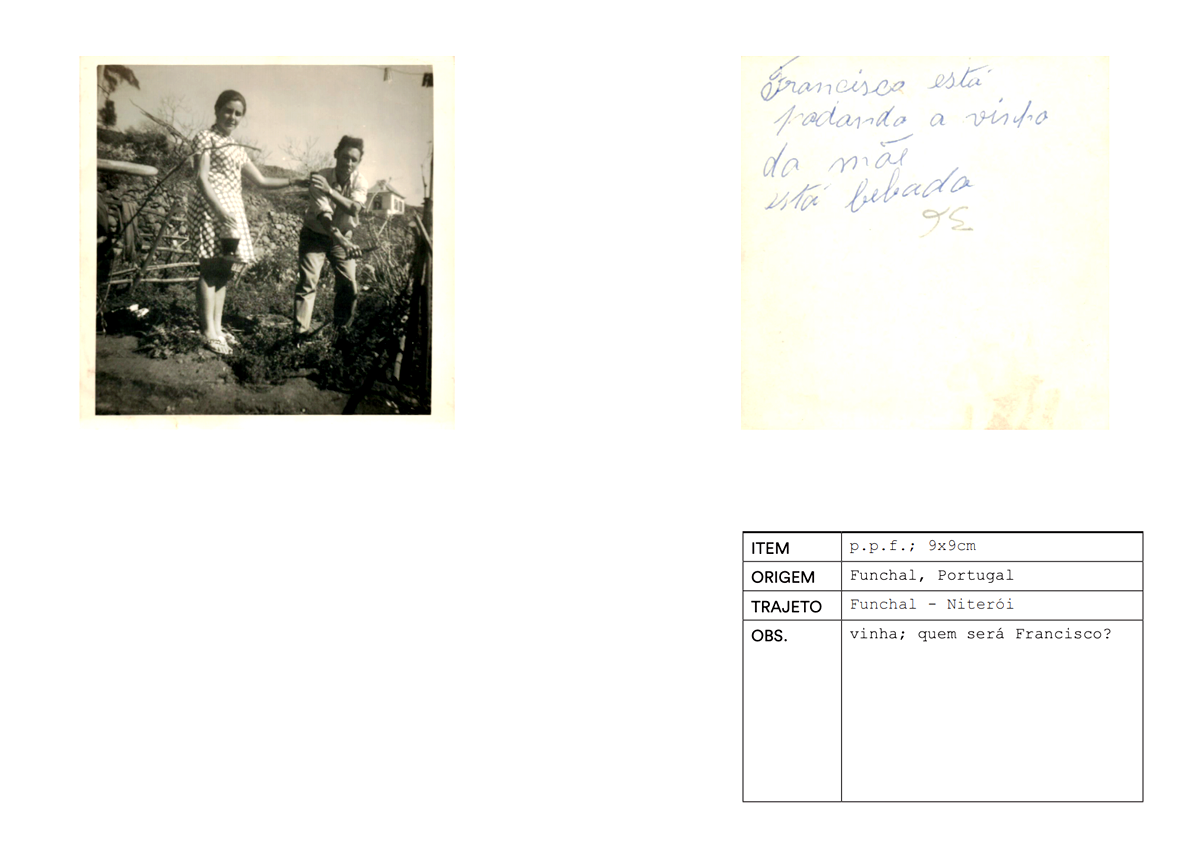 “Coisas de lá / aqui já está sumindo eu” parte de duas investigações académicas distintas, com um universo de pesquisa comum: a circulação de coisas [objectos e fotografias] no contexto transnacional de migrações portuguesas para o Brasil.