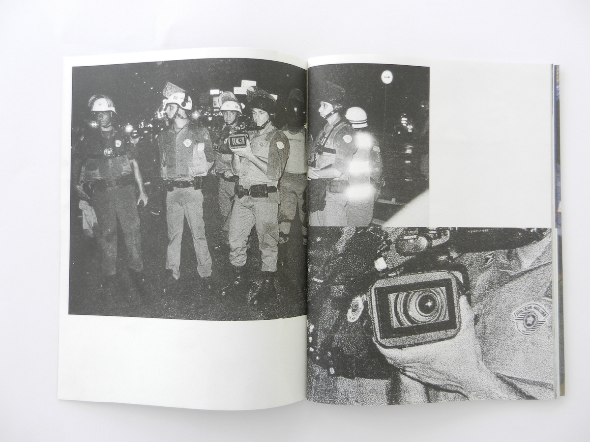Embora a maioria das imagens seja dos corpos vulneráveis dos insurgentes, são as fotos dos policiais que mais saltam à vista. A primeira imagem do livro mostra um policial não identificado segurando uma escopeta. Na sequência, um deles porta uma câmera de vídeo e aponta para os manifestantes. Quase no fim, um policial com caneleiras segura um enorme escudo retangular enquanto avança na direção do fotógrafo.