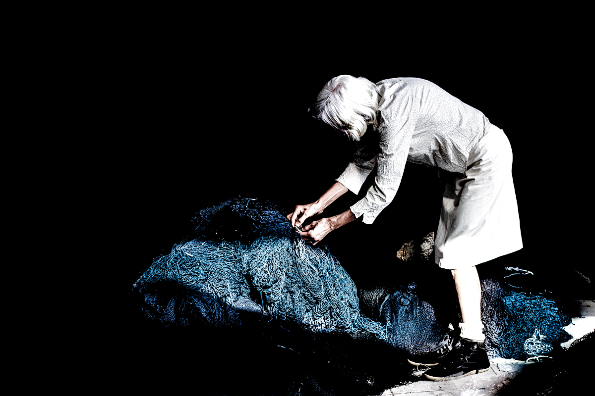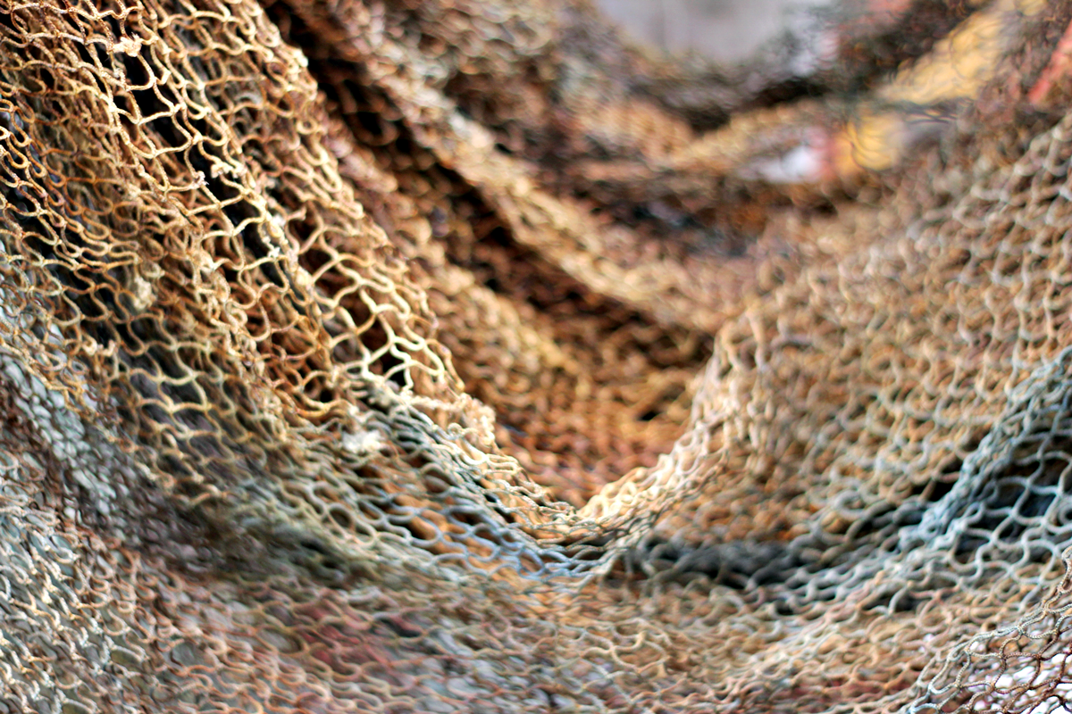 O ato de tricotar remete a uma atividade desenvolvida na infância, amadurecida no trabalho profissional e agora voltada ao puro exercício de observar volumes, sulcos, depressões e trama-los. É dessa forma que Nara trama a matéria prima de seu trabalho, as redes de pesca industrial lançadas ao mar e também a sua relação com a natureza e o impacto ambiental.