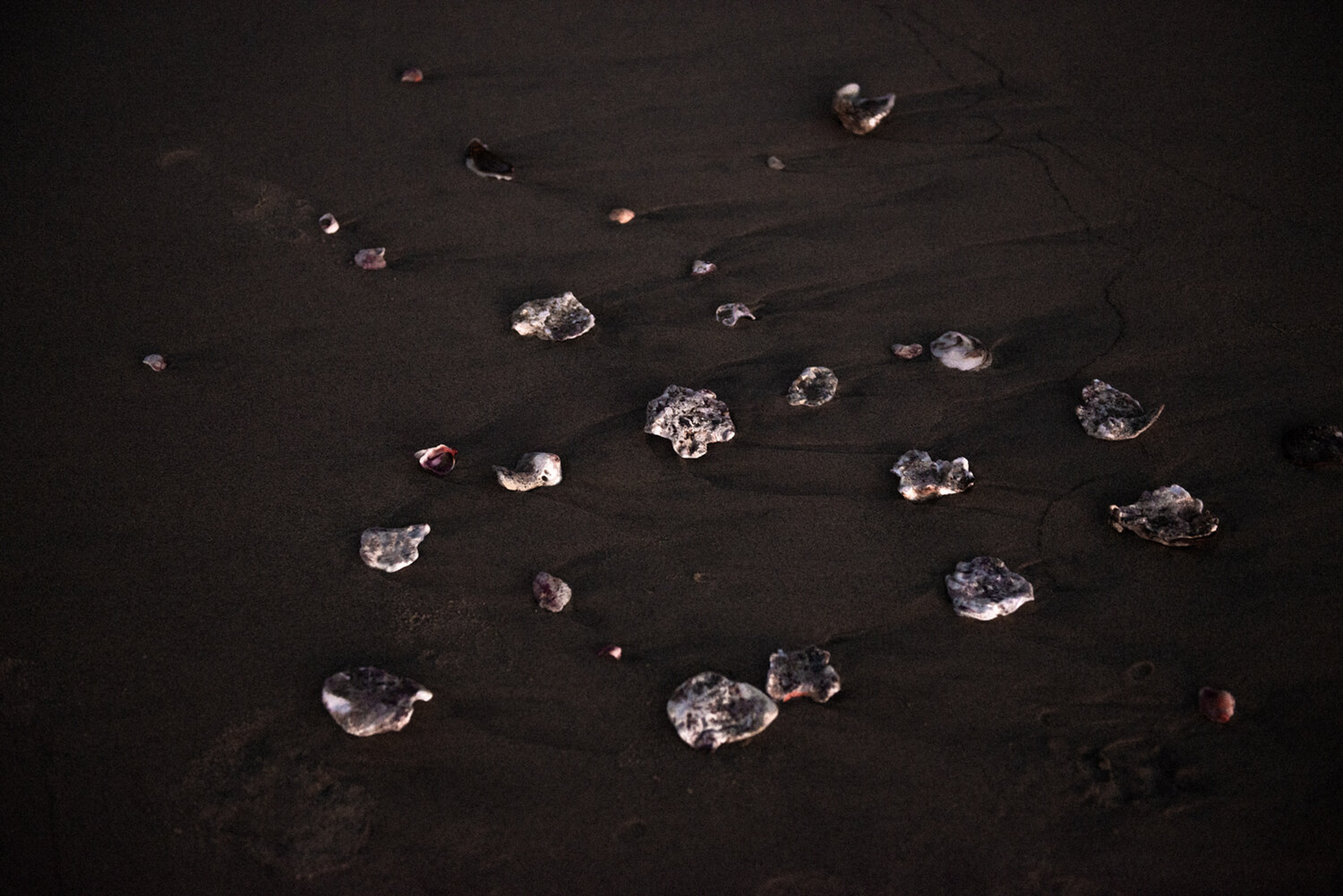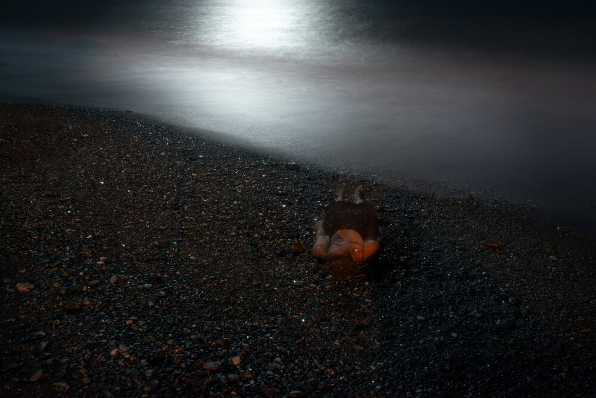 A série fotográfica Escavar o escuro foi desenvolvida em três litorais distintos, Imbassaí (Bahia), Itacoatiara (RJ) e Agua Blanca (Oaxaca, México) entre 2018 e 2020. Seguindo uma narrativa fantástica e operando a partir de uma dupla posição – a de estar atrás e na frente da câmera ao mesmo tempo – incursiono no breu da noite propondo dissoluções imaginárias do meu corpo no espaço, em relações de mimesis com a paisagem.