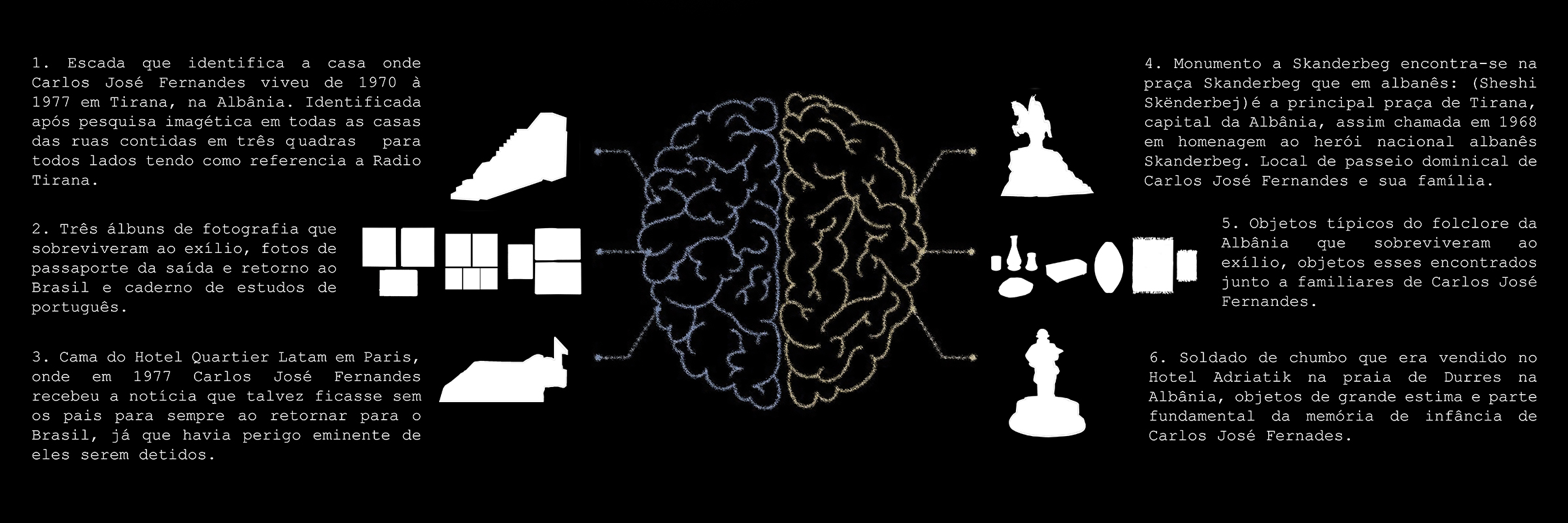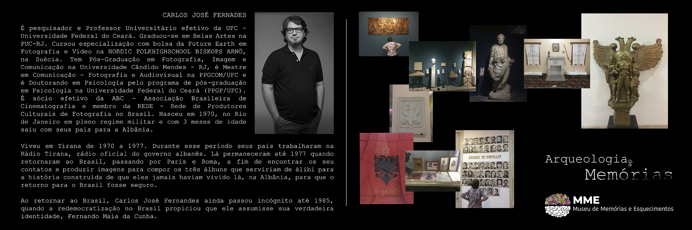 Estar diante do tempo, aliás atravessá-lo, se tornou a base do processo desafiante da construção desta exposição de imagens e objetos, frutos de uma pesquisa que fluidamente entrelaçam as imagens mentais e as memórias. Este ensaio de autorretrato pensa o atravessamento que a fotografia tem entre o documento e a ficção questionando o estatuto das imagens. Se baseando na construção de uma exposição, as pranchas seguem este enredo contando a história de Carlos José Fernandes através de suas supostas investigações arqueológicas.