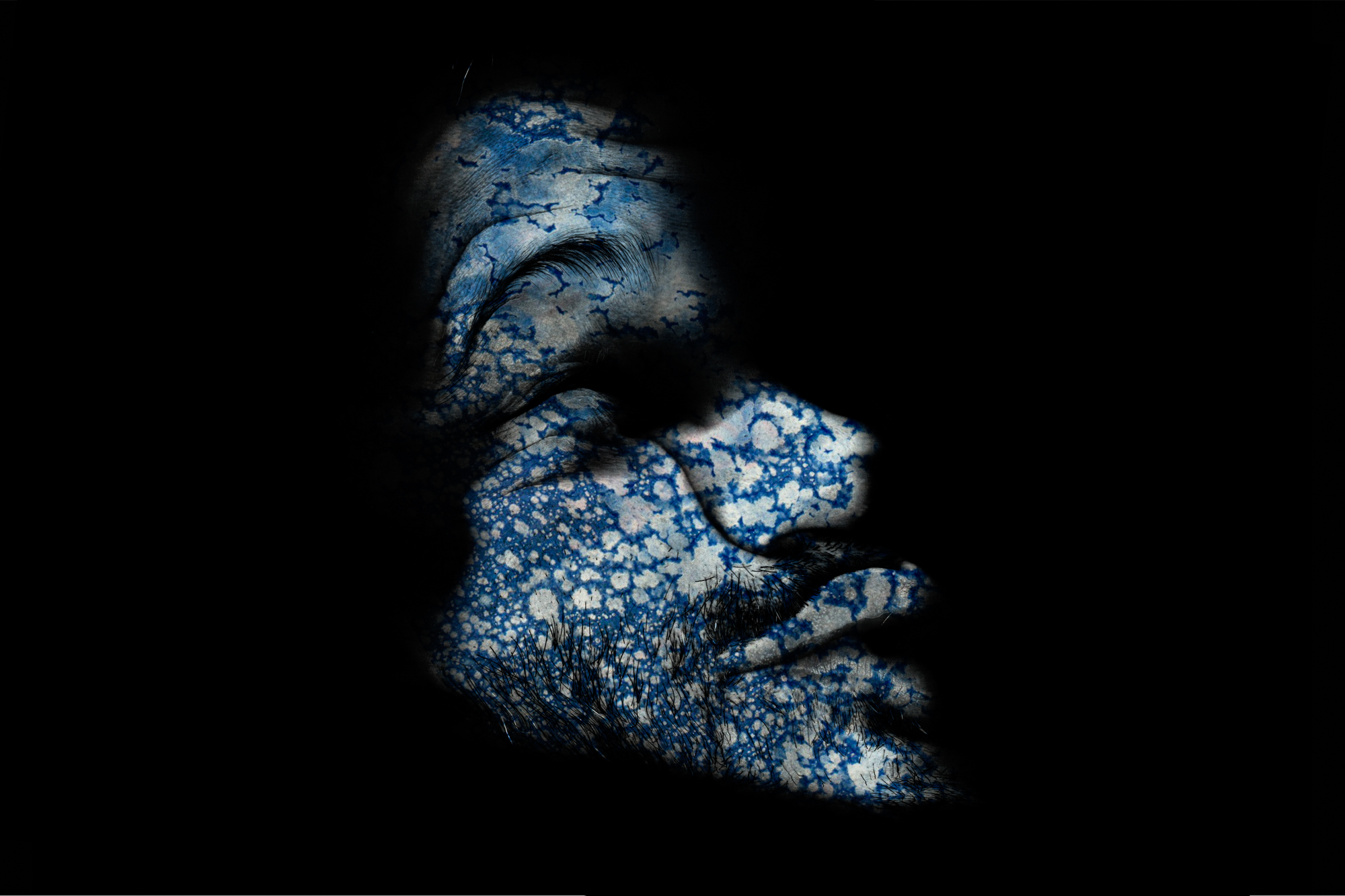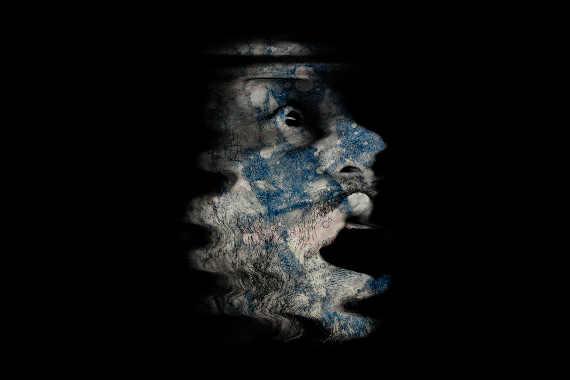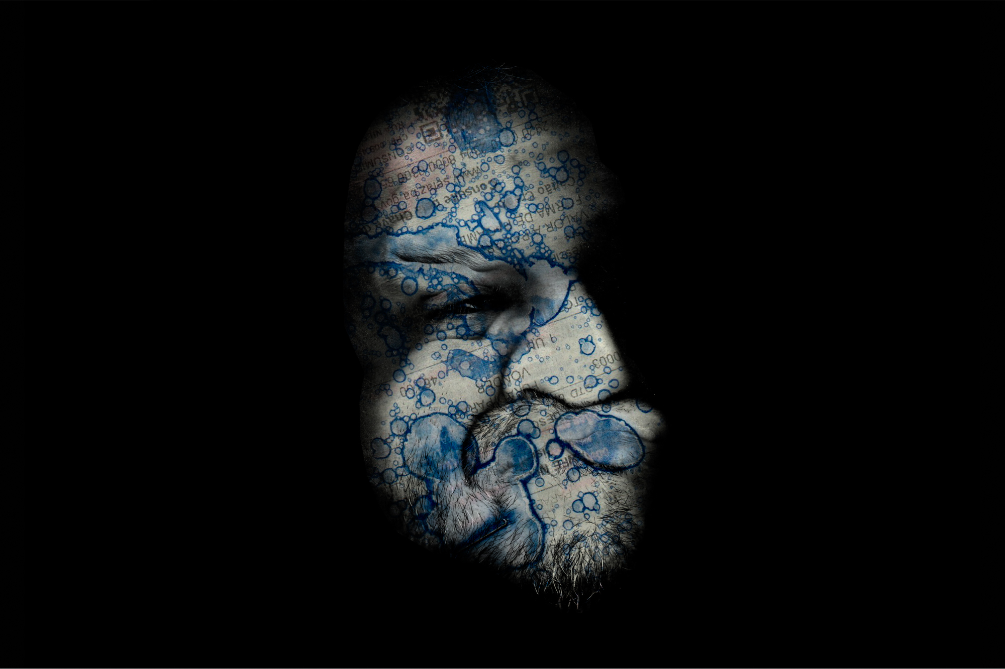 Comprovantes de consumo, sensibilizados pelo Álcool a 70%, adquirem padrões amorfos e estéreis. O rosto pressionado contra o vidro do scanner se deforma em sentidos e expressões. Sobrepostos a “Colônia” se revela.
