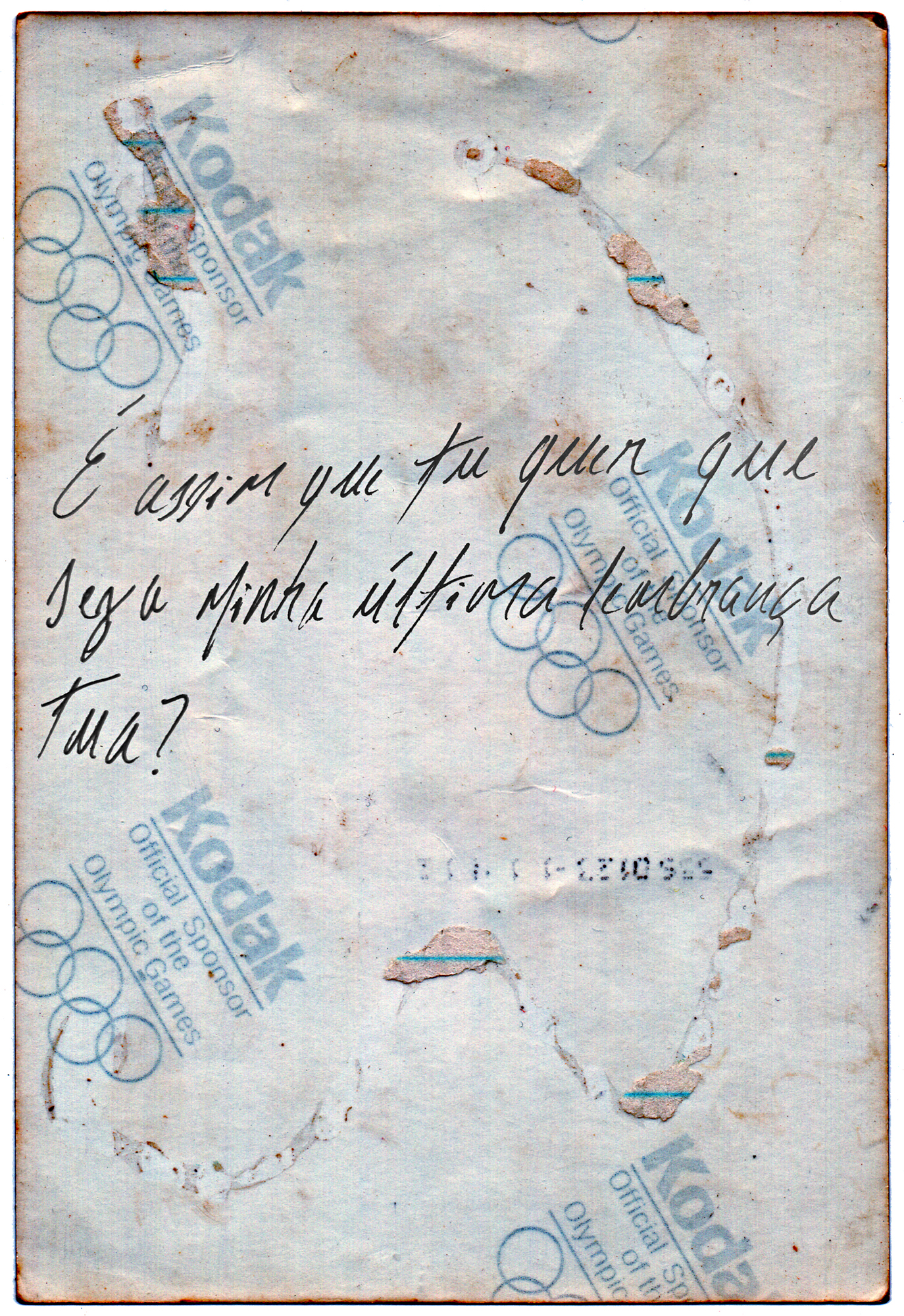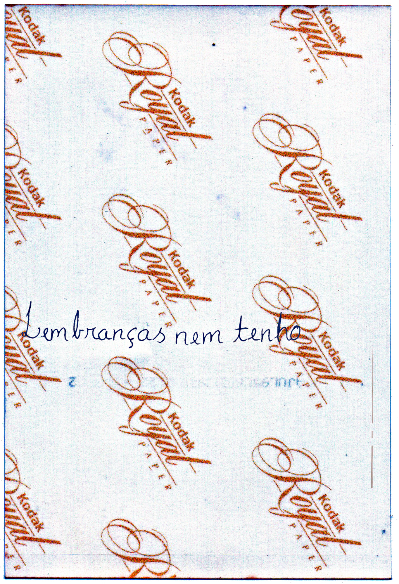 Em uma série de sete imagens em tamanho 10×15, trago o registro sobre o registro feito nos versos de fotografias de família. Uma tentativa de suprir a ausência do que a fotografia não registra? Um medo de esquecer? Uma escrita da história pessoal? Lembranças nem tenho é um trabalho que está situado nas lacunas da memória, no medo de esquecer, na tentativa – sempre falha – de curar as ausências. Dos registros, das memórias mal contadas pelo devaneio da loucura, da resposta dolorosa à pergunta desamparada.