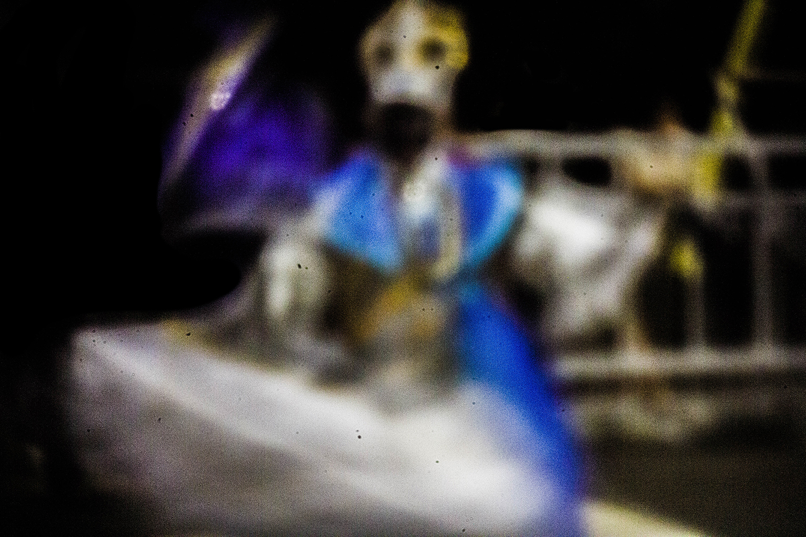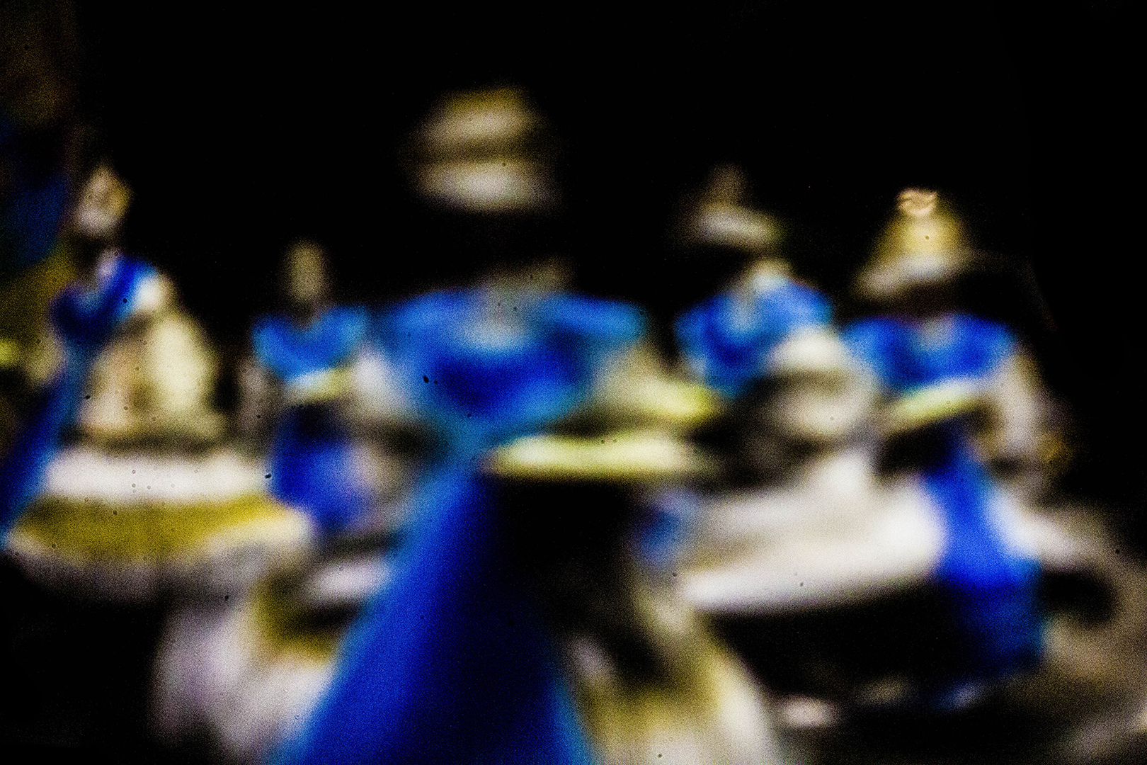 Quando o baque ressoa é o maracatu entrando na avenida. Maracatu é uma manifestação cultural que traz consigo a exaltação a ancestralidade negra, seja através da reverência a entidades de religiões de matriz africanas ou pela dança dramática carregada de simbolismos e histórias seculares de resistência. O maracatu consiste em um cortejo de negros que culminava com a coroação simbólica do rei e da rainha do Congo. Estudos relatam a prática do maracatu na cidade de Fortaleza desde a década de 80 do século XIX. Proibido pela igreja católica e pela elite cearense com pena de prisão e multa, os negros passaram a usar o negrume (uma tinta preta para pintar os rostos) como forma de manter a tradição e não serem identificados. Só em 1937, os maracatus foram oficialmente incluídos no carnaval de Fortaleza e apenas no ano de 2015 se tornou patrimônio imaterial da cidade. Pela primeira vez fui ver de perto essa tradição cultural que exalta nossa ancestralidade. Como fotógrafa, escolhi registrar sem lentes (transformando a câmera digital em uma pinhole), apenas com um furo na tampa no lugar da objetiva. A estética foi resultado do ritmo das batidas dos tambores ressoando no meu corpo e coração. Com a câmara longe dos olhos, vivenciei tudo de forma orgânica e confesso: foi incrível!