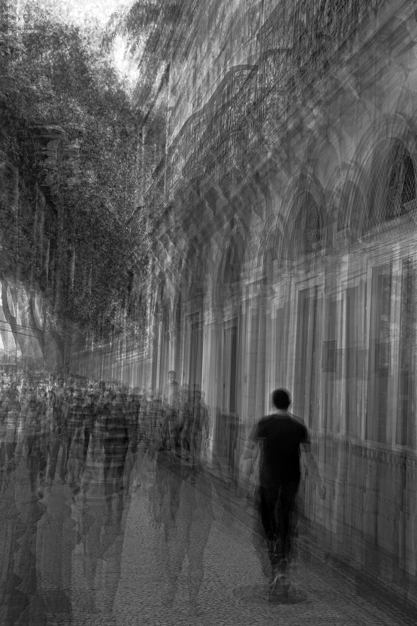 A região central das grandes cidades é marcada por fluxos constantes de pessoas. O movimento contínuo e frenético dos sujeitos pelas ruas e o seu contraste com a arquitetura é meu objeto de pesquisa fotográfica neste trabalho.