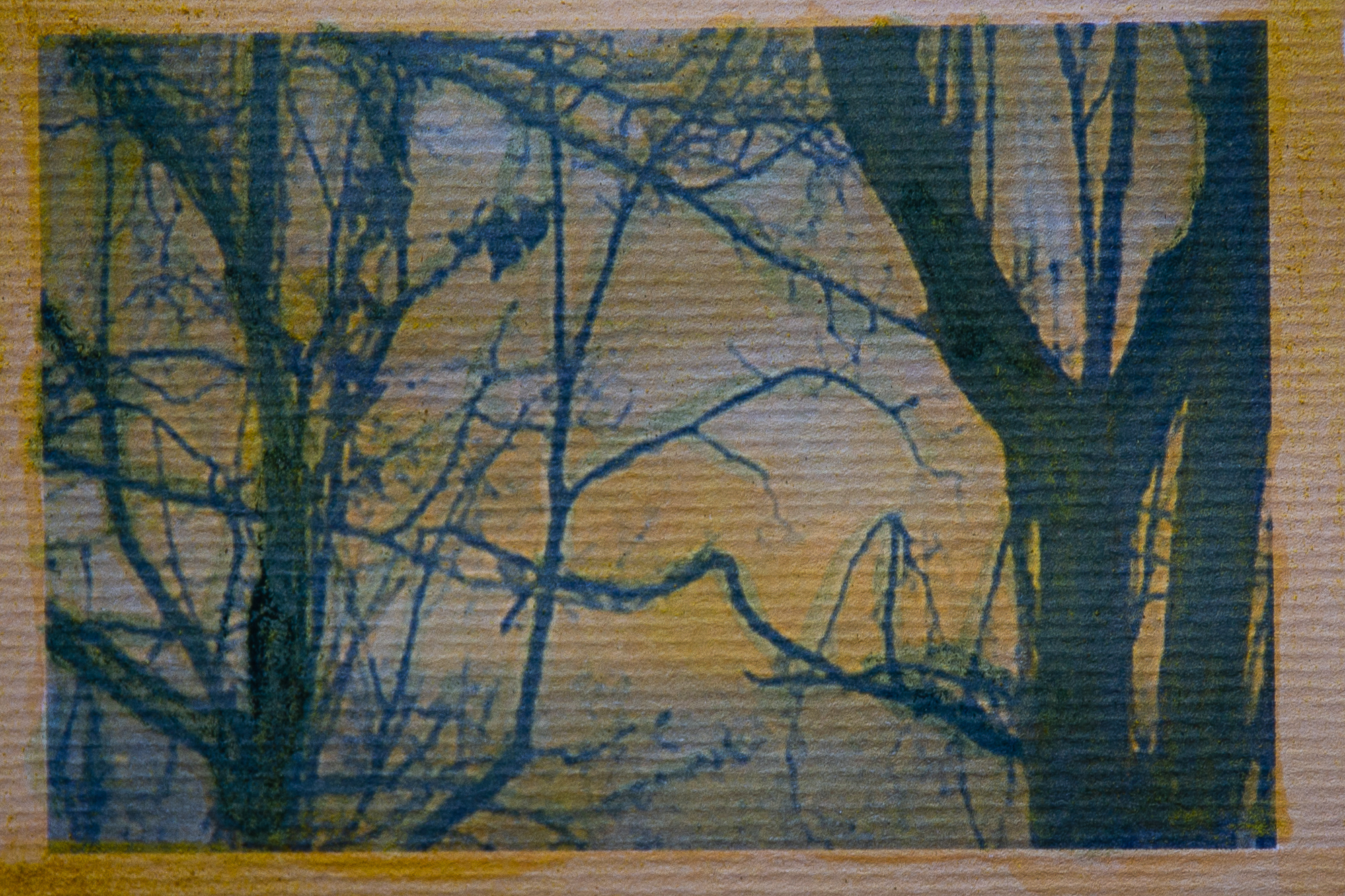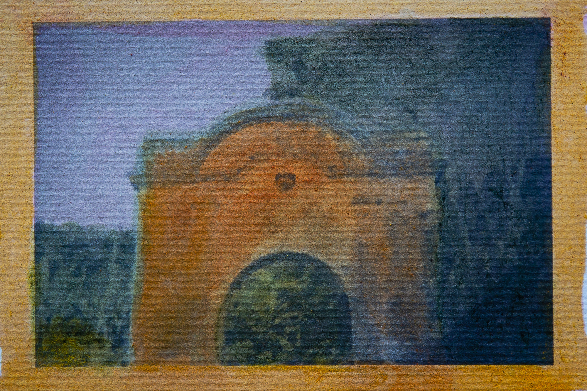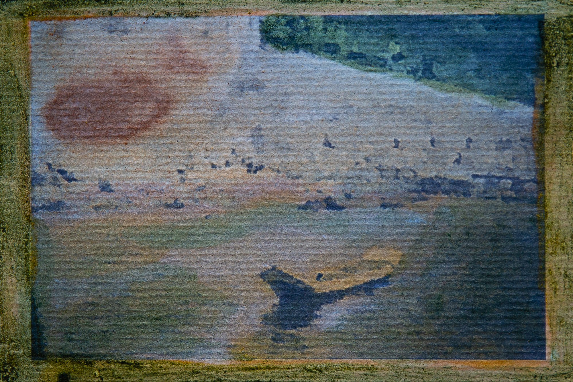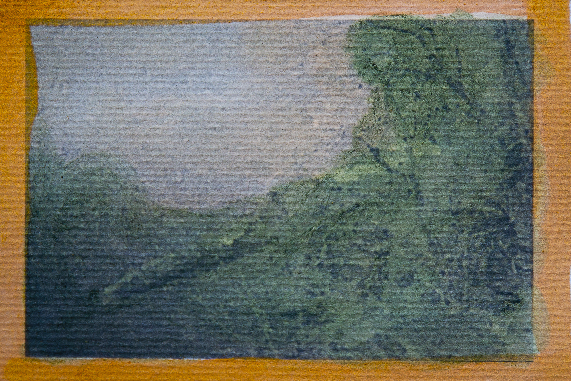 Como método de trabalho: fotografei negativos usando um aplicativo de celular ou um scanner, inverti para o positivo, imprimi as fotos em papel aquarela, colori com pigmentos naturais fotossensíveis, re-fotografei e estou acompanhando as mudanças de coloração.