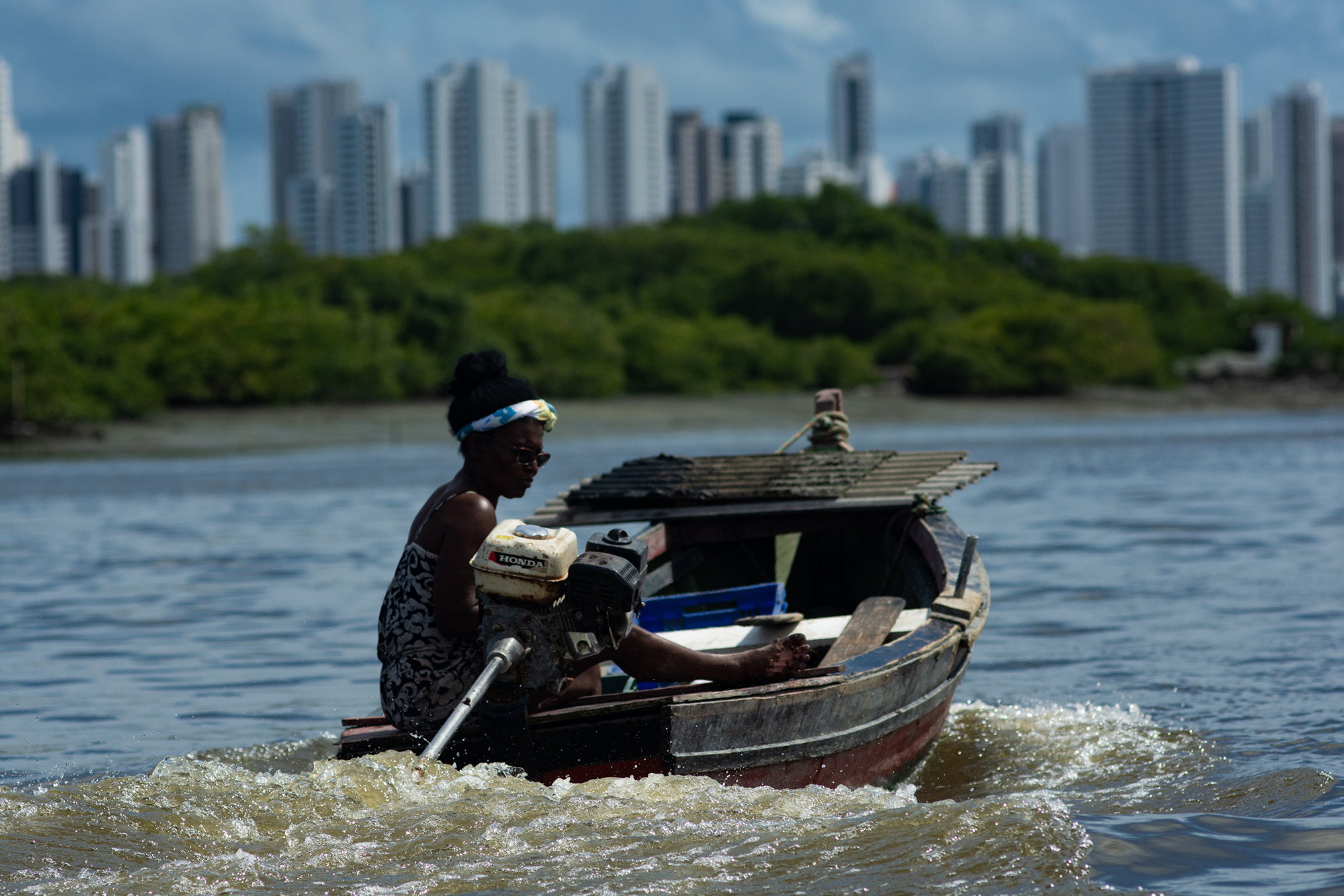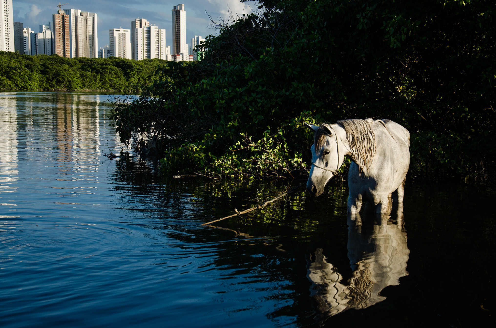 Lançada virtualmente no período da pandemia – 08 de abril de 2021 pelo LAB-PE – , a exposição teve sua pesquisa imagética iniciada em 2013, quando o fotógrafo já militava no grupo Direitos Urbanos, formado por ativistas em prol de uma cidade sustentável. A organização da sociedade civil tem como foco principal a luta contra um modelo de cidade calcado no carro individual e shopping centers, privilegiando a especulação imobiliária na beira das águas. Toda esta região, partindo da Zona Sul até o centro expandido do Recife, sofreu mudanças profundas e o Parque dos Manguezais acabou perdendo espaço do seu território para construir a Via Mangue (via expressa de automóveis), impulsionando mais ainda o uso do carro individual como transporte hegemônico e intensificando o processo de gentrificação, principalmente nas comunidades existentes na região do Pina, próximas ao manguezal.