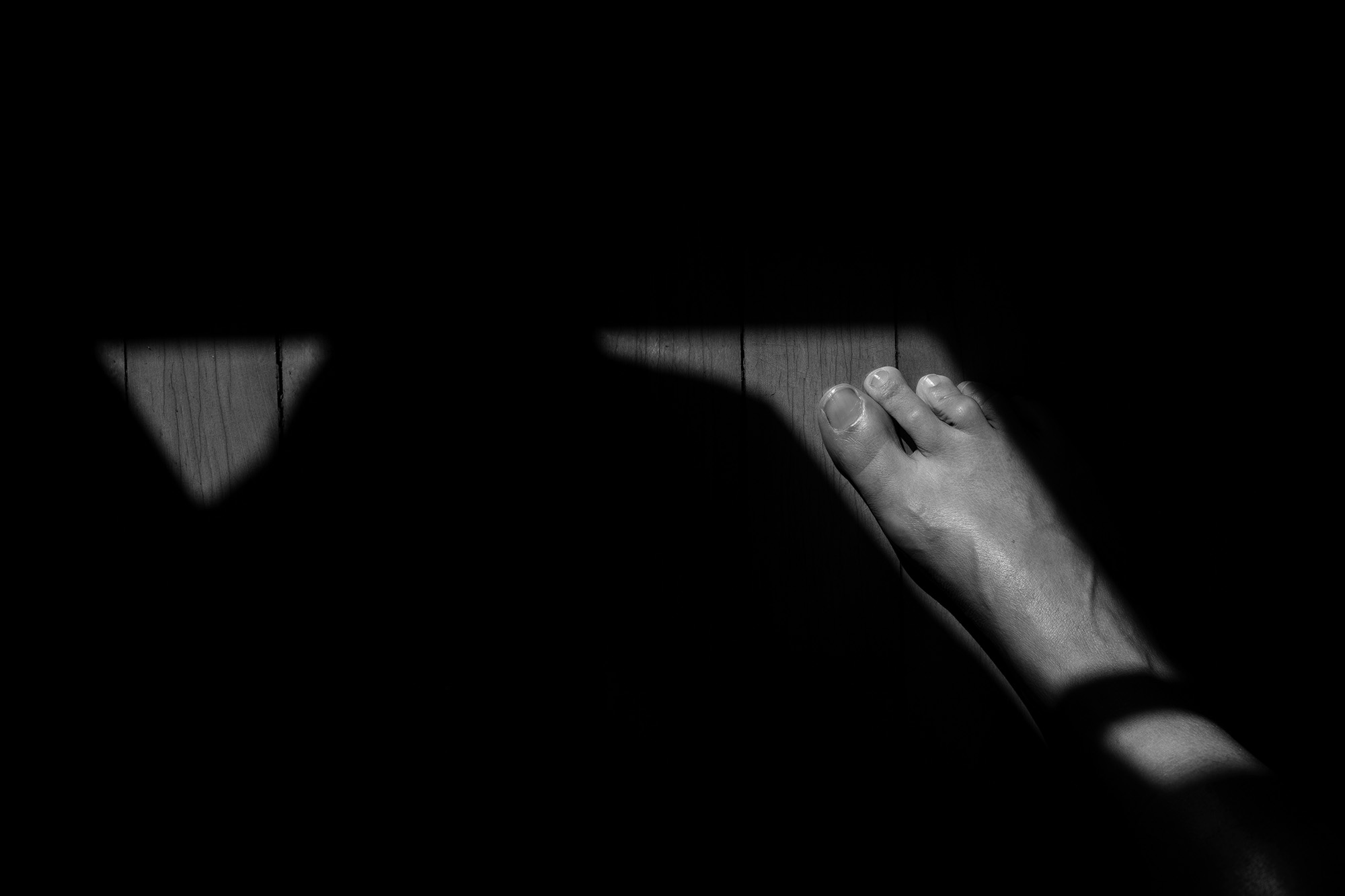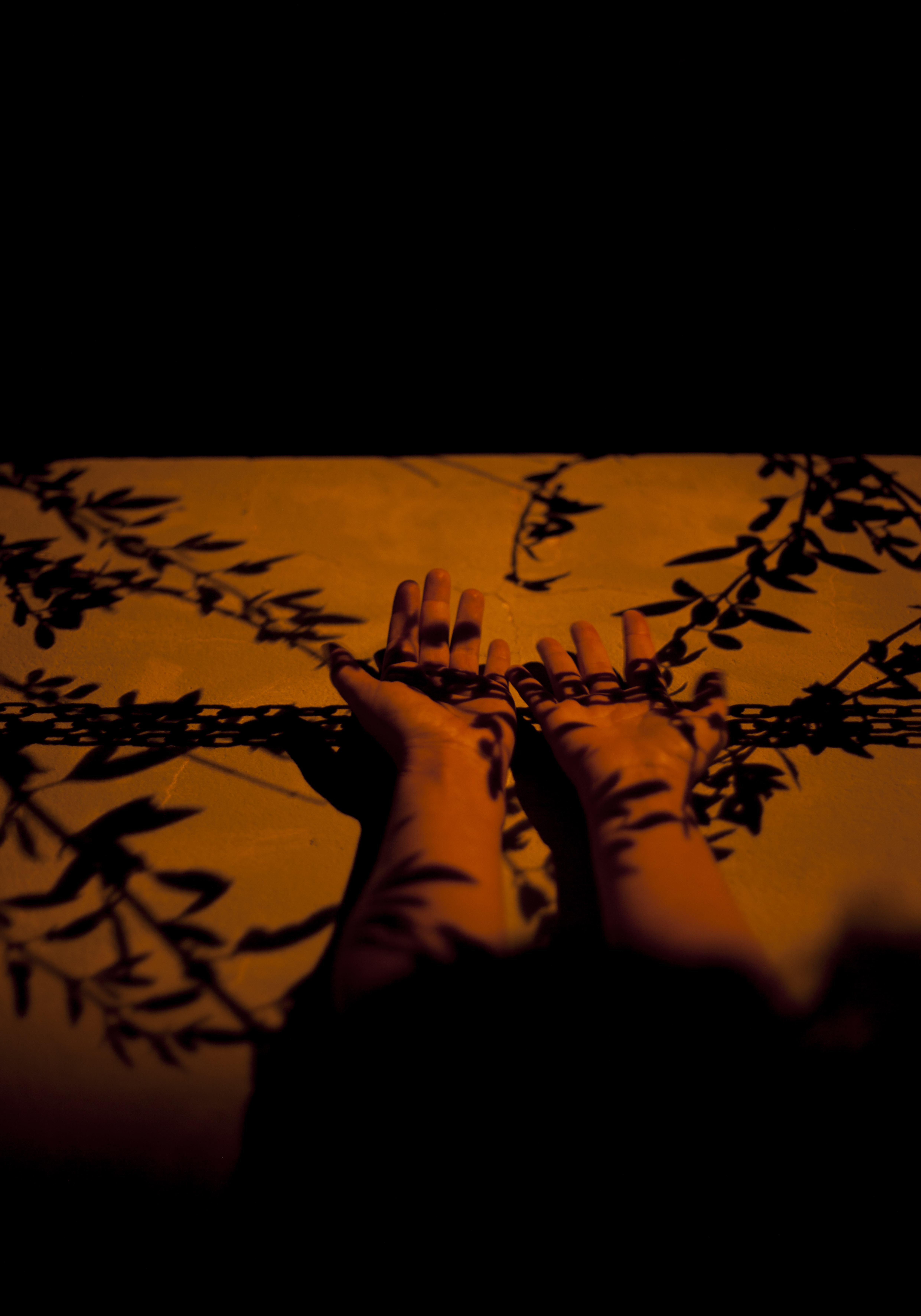 Esse é um ensaio inacabado de fotografias que fazem parte de uma pesquisa que venho fazendo com a luz e a sombra desde 2019. Nessa experiência, coloco o meu corpo como suporte para as linhas orgânicas e geométricas. Tenho interesse por esses contornos que ora são desenhados pelas manchas, ora pelos feixes de luz. Numa atmosfera surreal, me revelo e me escondo nos rastros que atravessam meu olhar. São vestígios que tocam esse suporte, a pele, deixando marcas efêmeras que se misturam com o ambiente de forma a confundir o que é espaço, o que é corpo, o que é luz e o que é sombra.