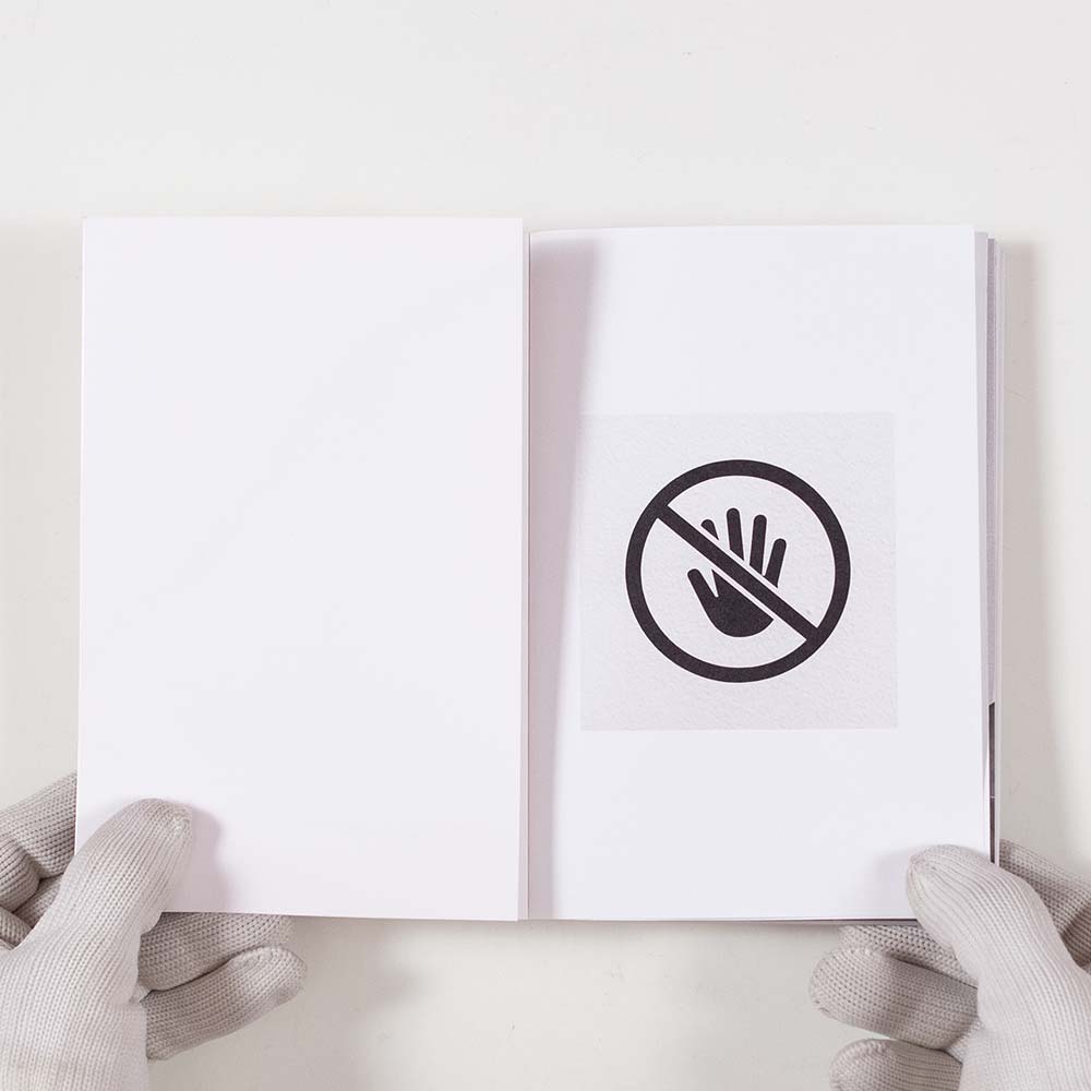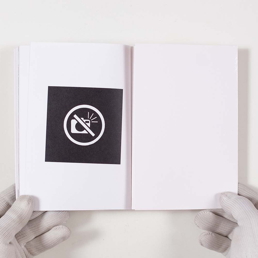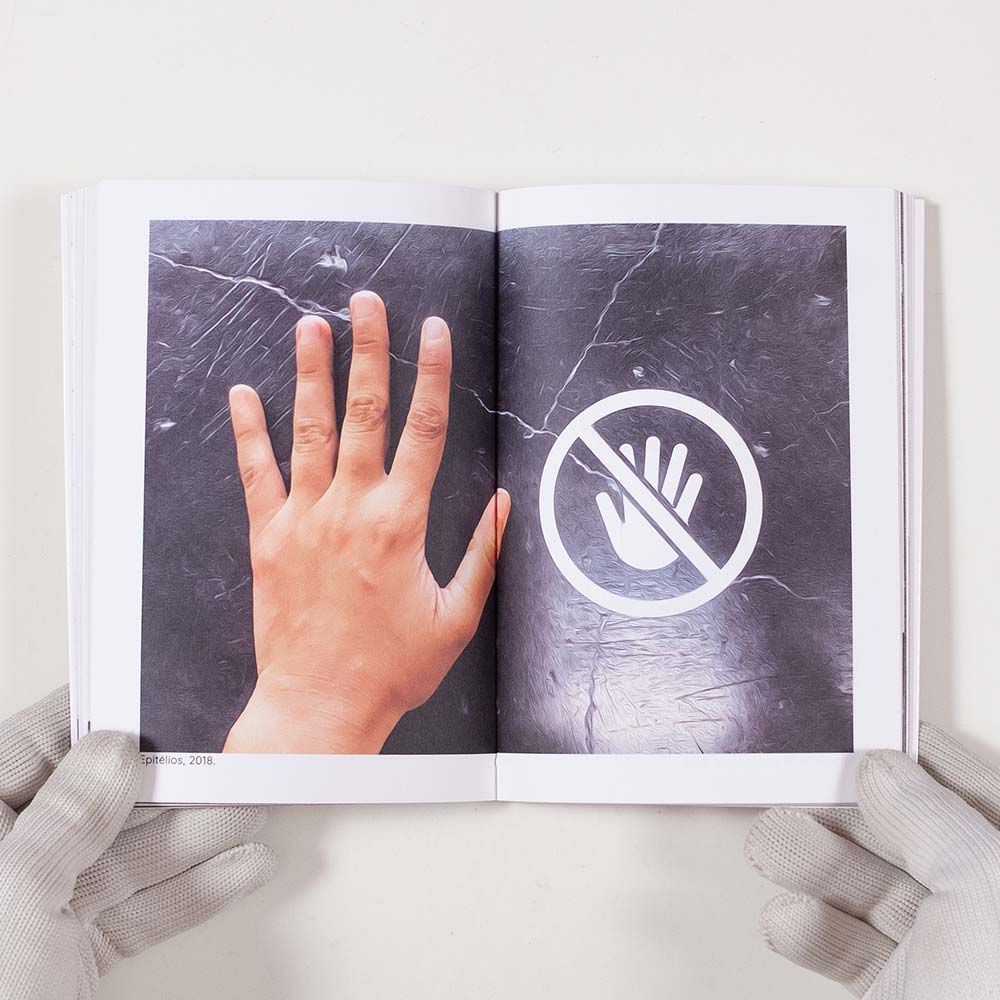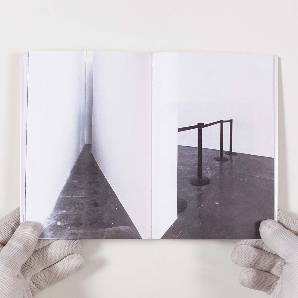 Partindo de fotos realizadas com o celular, F. recria imagens manipuladas, repetitivas, secas e transparentes por meio de softwares de tratamento. Cenas desnudas de um sistema sígnico, opaco, que hierarquicamente ordena e determina as ações possíveis de nossos corpos nesse não-lugar que são os tradicionais ambientes expositivos. Tais cenas são encarnadas nesse corpo material que é Catálogo, souvenir típico de exposições artísticas, aqui desviado de suas funções normativas.