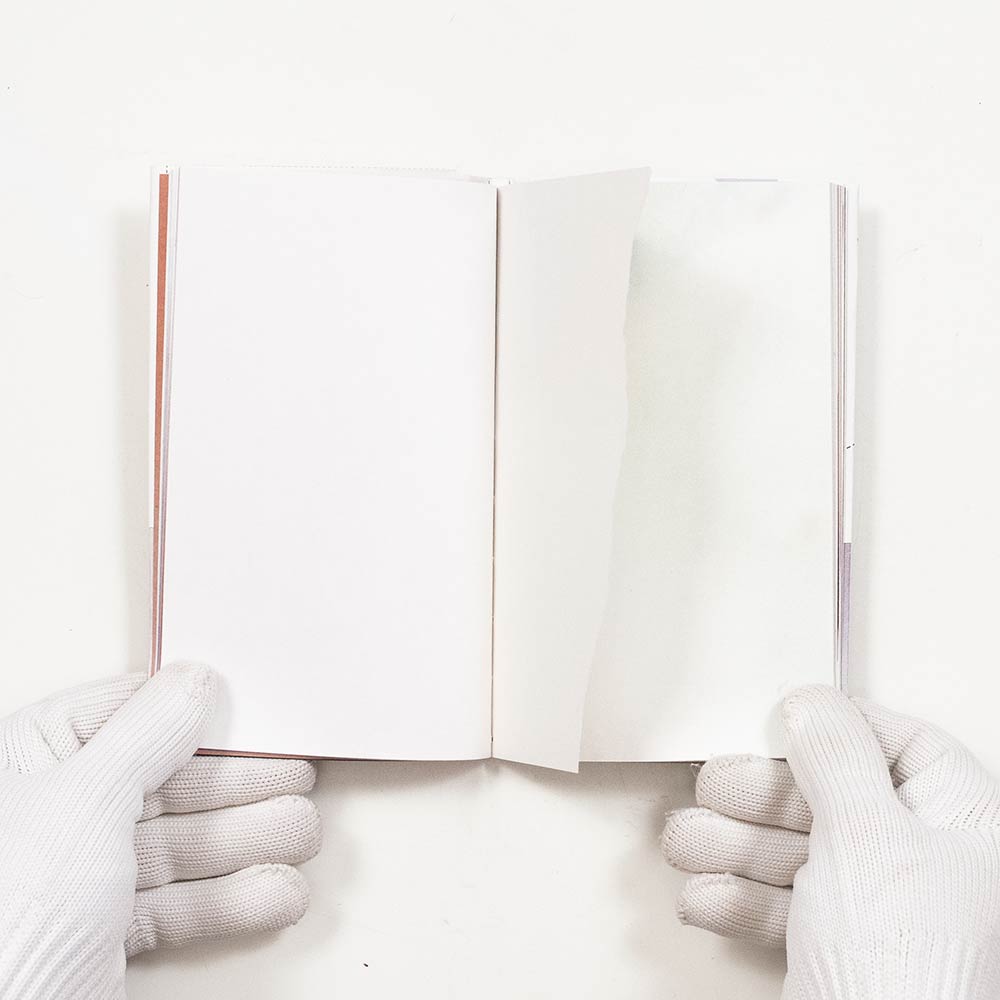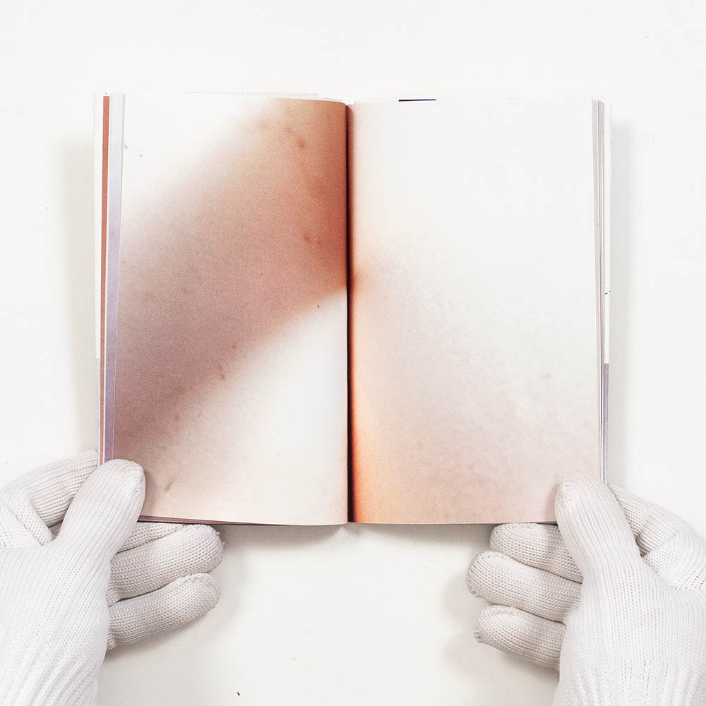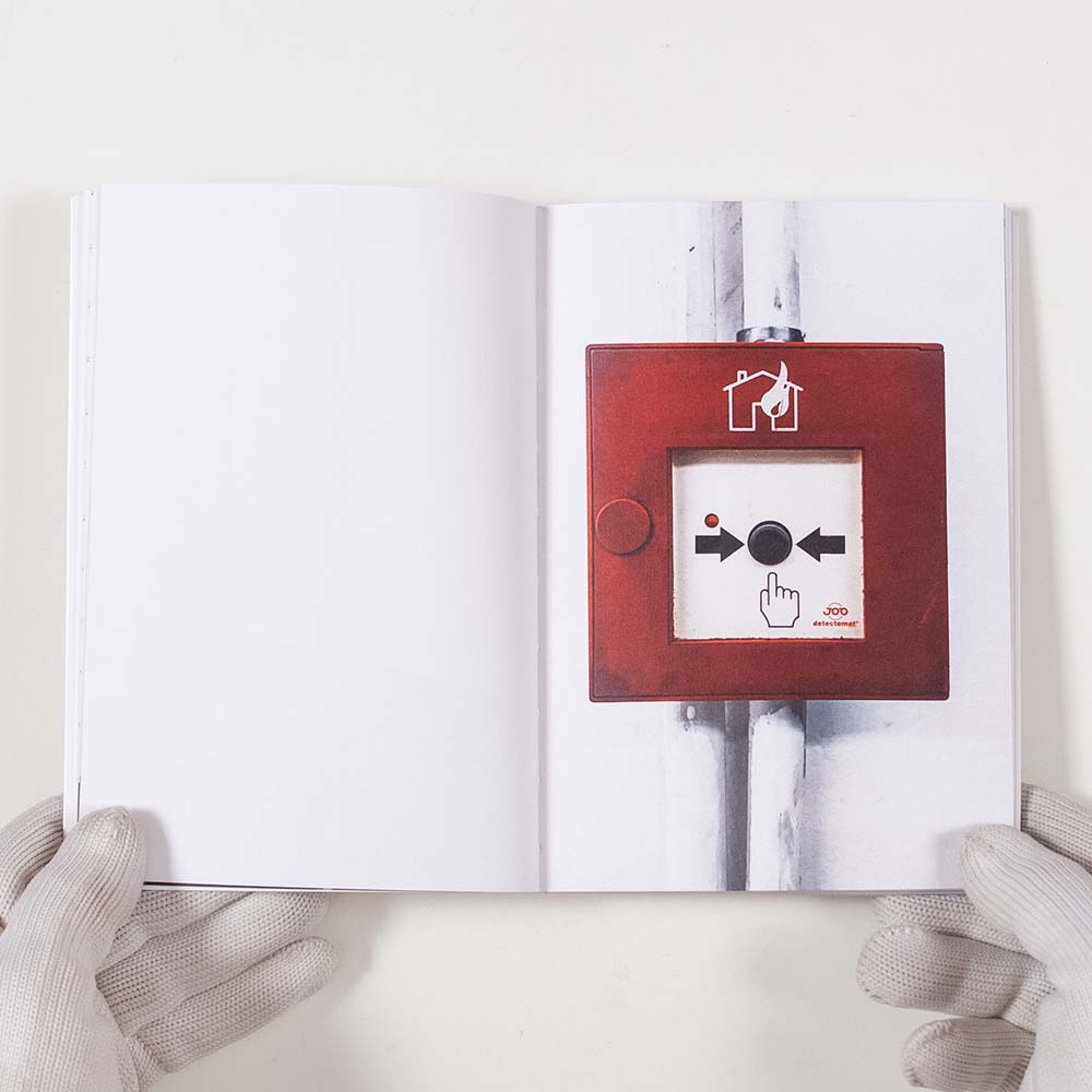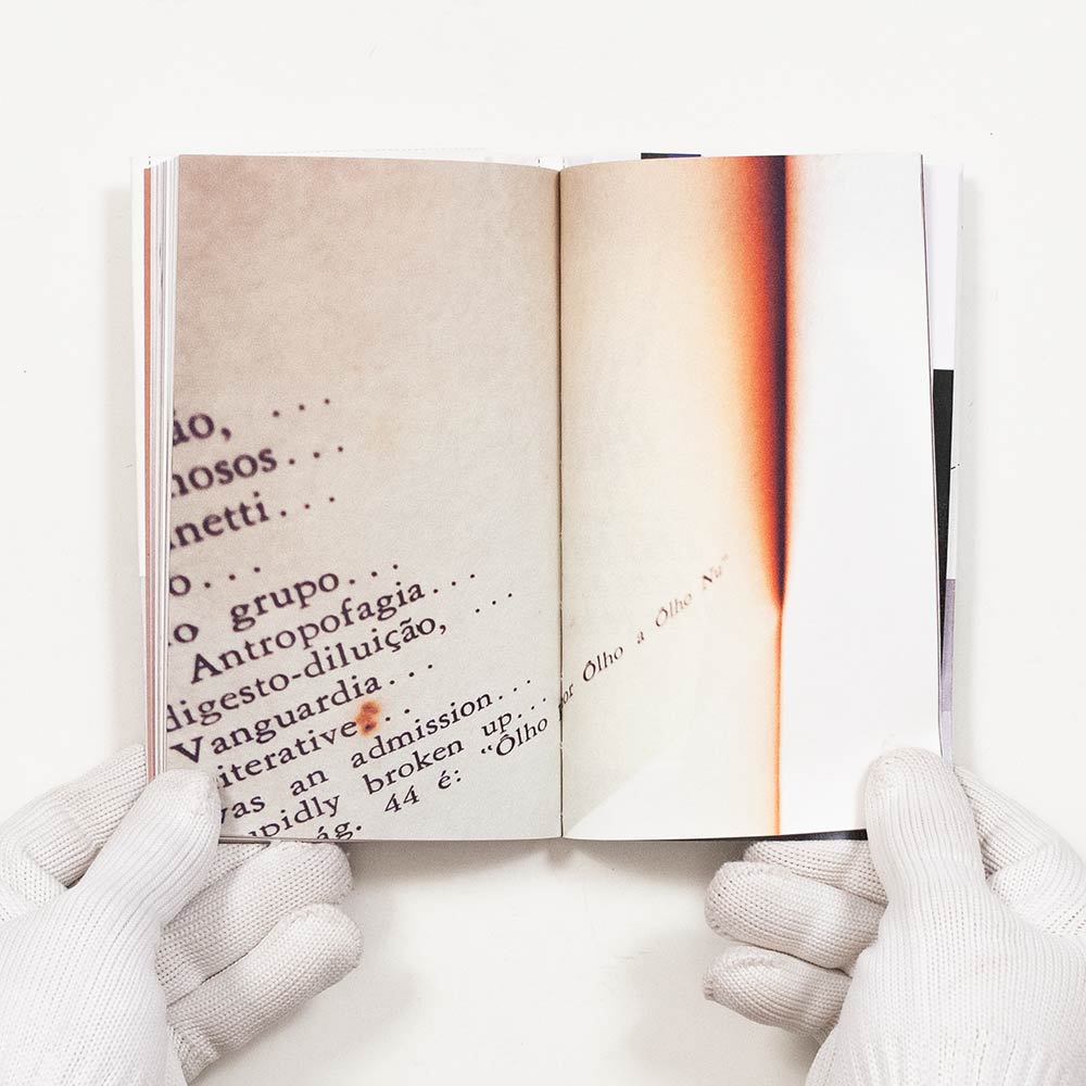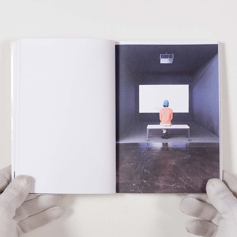 Partindo de fotos realizadas com o celular, F. recria imagens manipuladas, repetitivas, secas e transparentes por meio de softwares de tratamento. Cenas desnudas de um sistema sígnico, opaco, que hierarquicamente ordena e determina as ações possíveis de nossos corpos nesse não-lugar que são os tradicionais ambientes expositivos. Tais cenas são encarnadas nesse corpo material que é Catálogo, souvenir típico de exposições artísticas, aqui desviado de suas funções normativas.