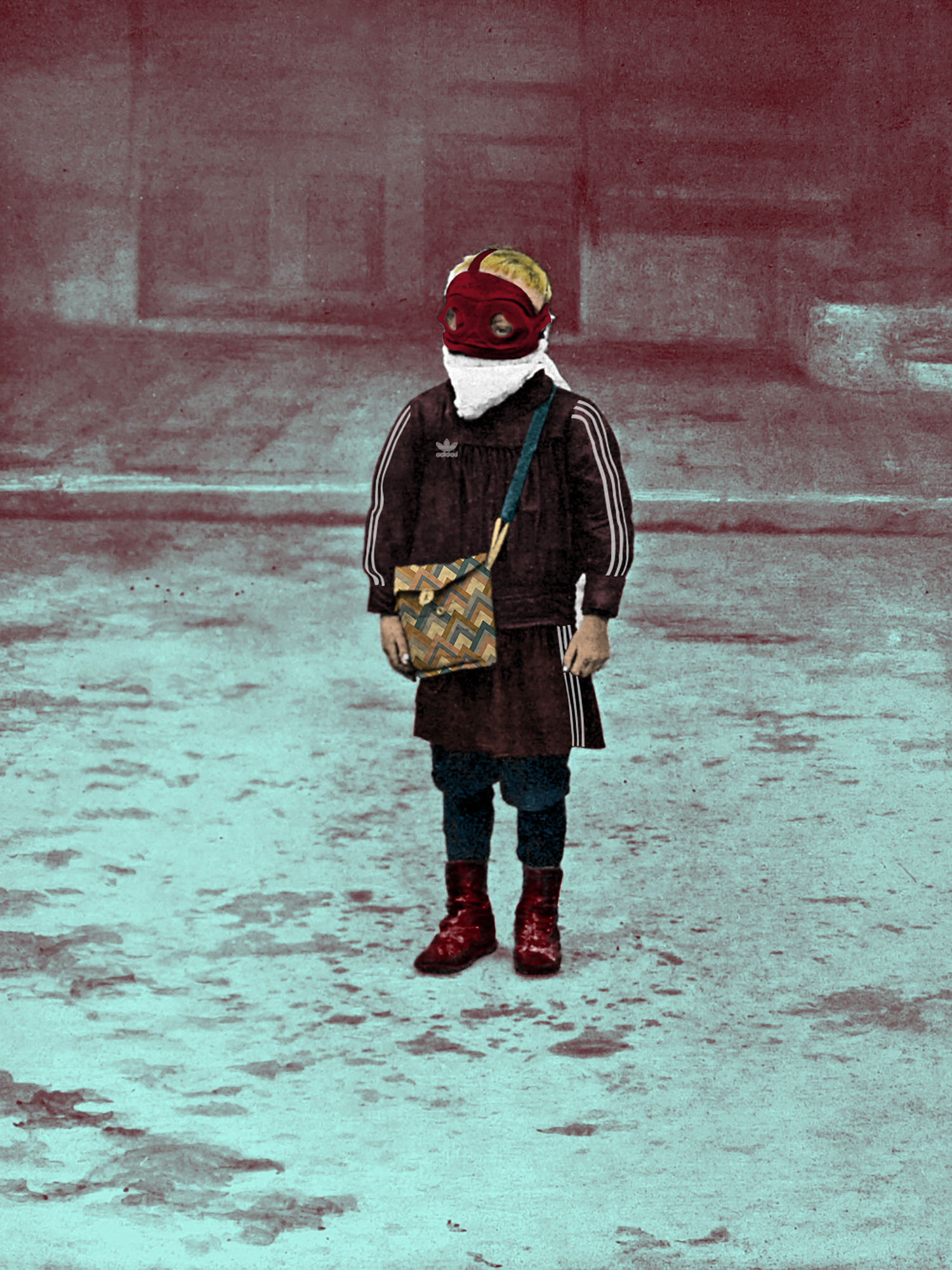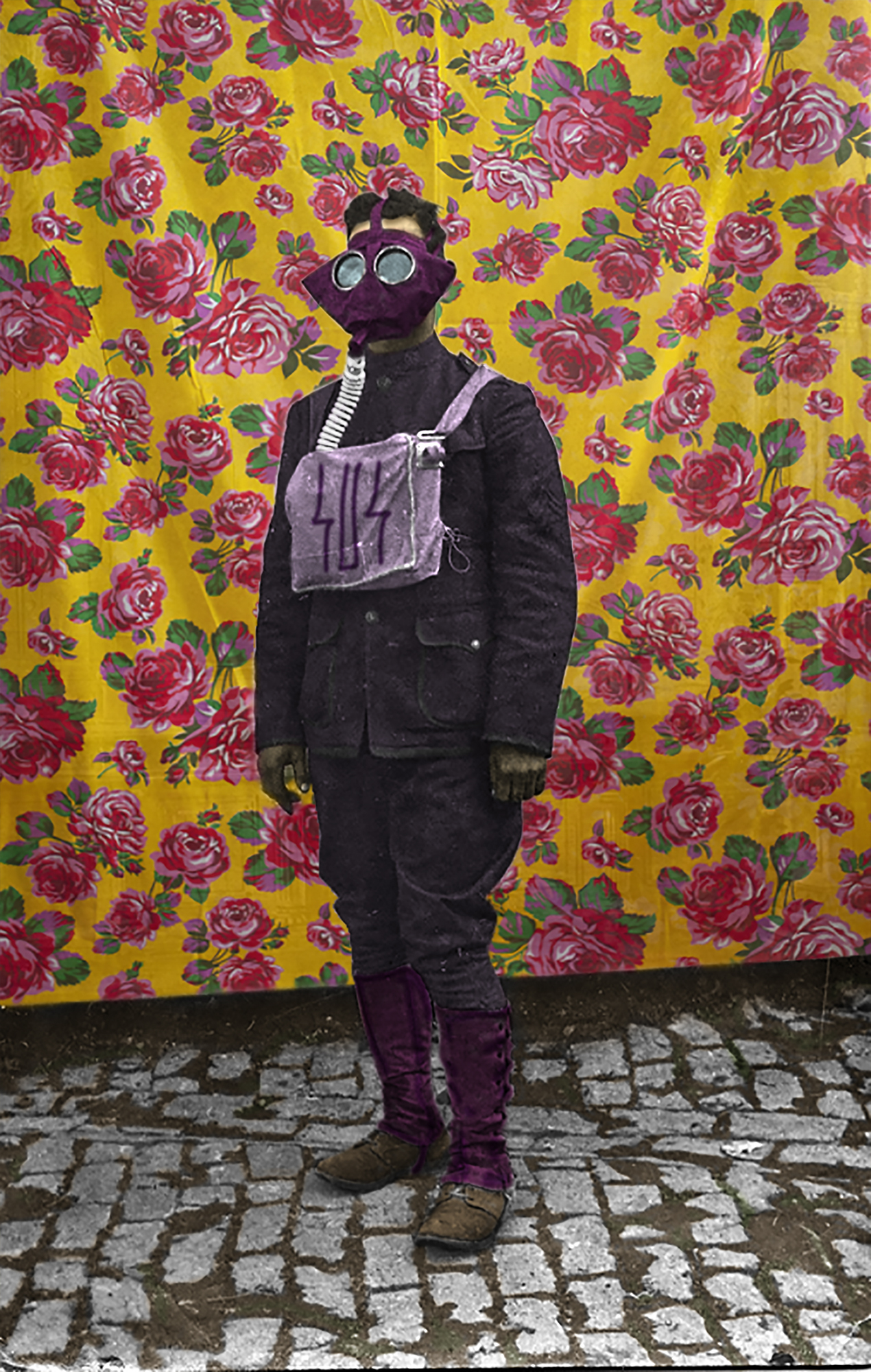 A série tem como base arquivos fotográficos digitalizados de instituições nacionais e internacionais, imagens com mais de 100 anos. Na pesquisa das imagens foi usada a palavra-chave: “Máscara”. Segundo google uma das palavras mais pesquisadas nas duas primeiras semanas de quarentena no Brasil. Para criar uma narrativa visual foi usada fotografias de fatos históricos como a Primeira guerra mundial e a Gripe espanhola, criando uma ponte como a atual situação sanitária mundial. Me aproprio dessas imagens e com a técnica de fotopintura digital faço uma coloração e acrescentar novas camadas para poder dialogar com a Pandemia que estamos vivendo nos tempos atuais. A Máscara tem sido um dos objetos essenciais dentro desse cenários e por vezes comparado por líderes governamentais e imprensa como uma arma de guerra frente ao Coronavírus. A série se mantém em processo para experimentar novas imagens, mesmo porque estamos de quarentena até o presente momento aqui no Brasil.