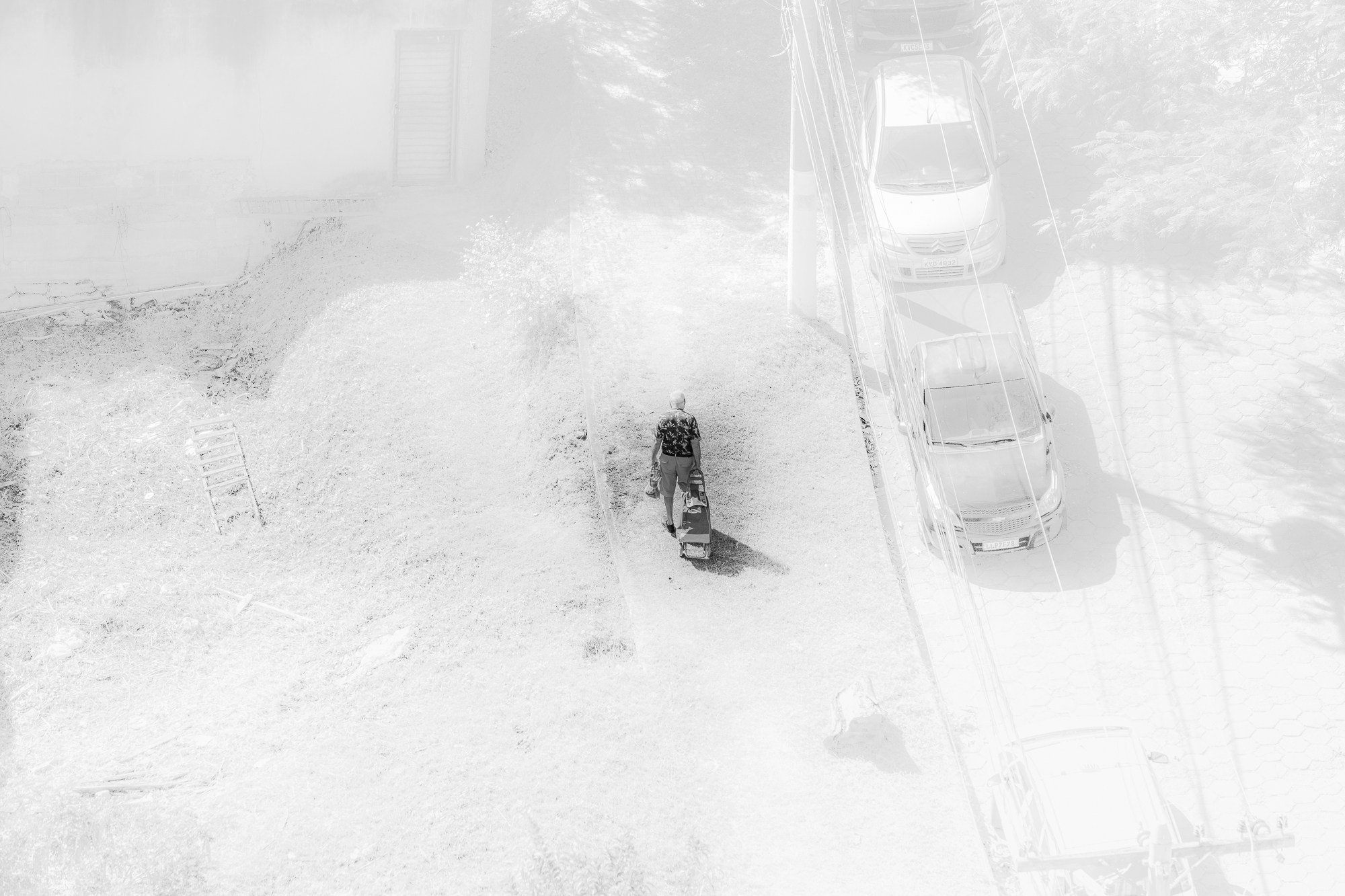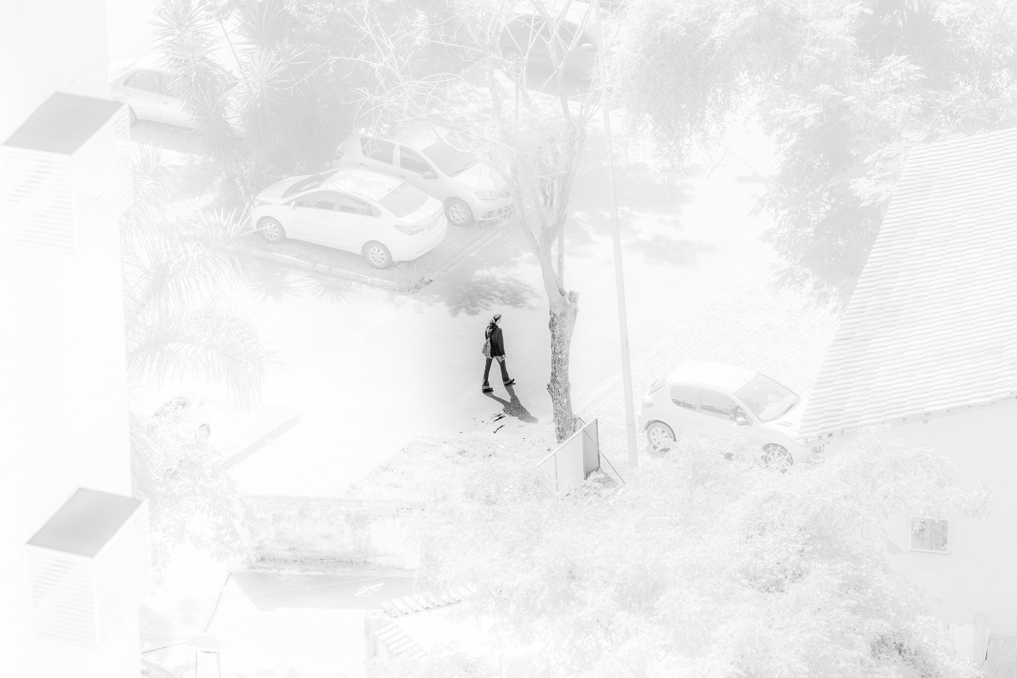 As imagens deste projeto representam uma alusão ao resultado do processo químico de produtos sanitários utilizados em larga escala durante a pandemia de Covid-19. Esses produtos, além de desinfetar, podem desbotar as cores quando aplicados a objetos pigmentados. Os personagens, carregados com uma “aura cinza”, nos dão a ideia de possíveis focos do vírus no meio dessa imensidão incolor.