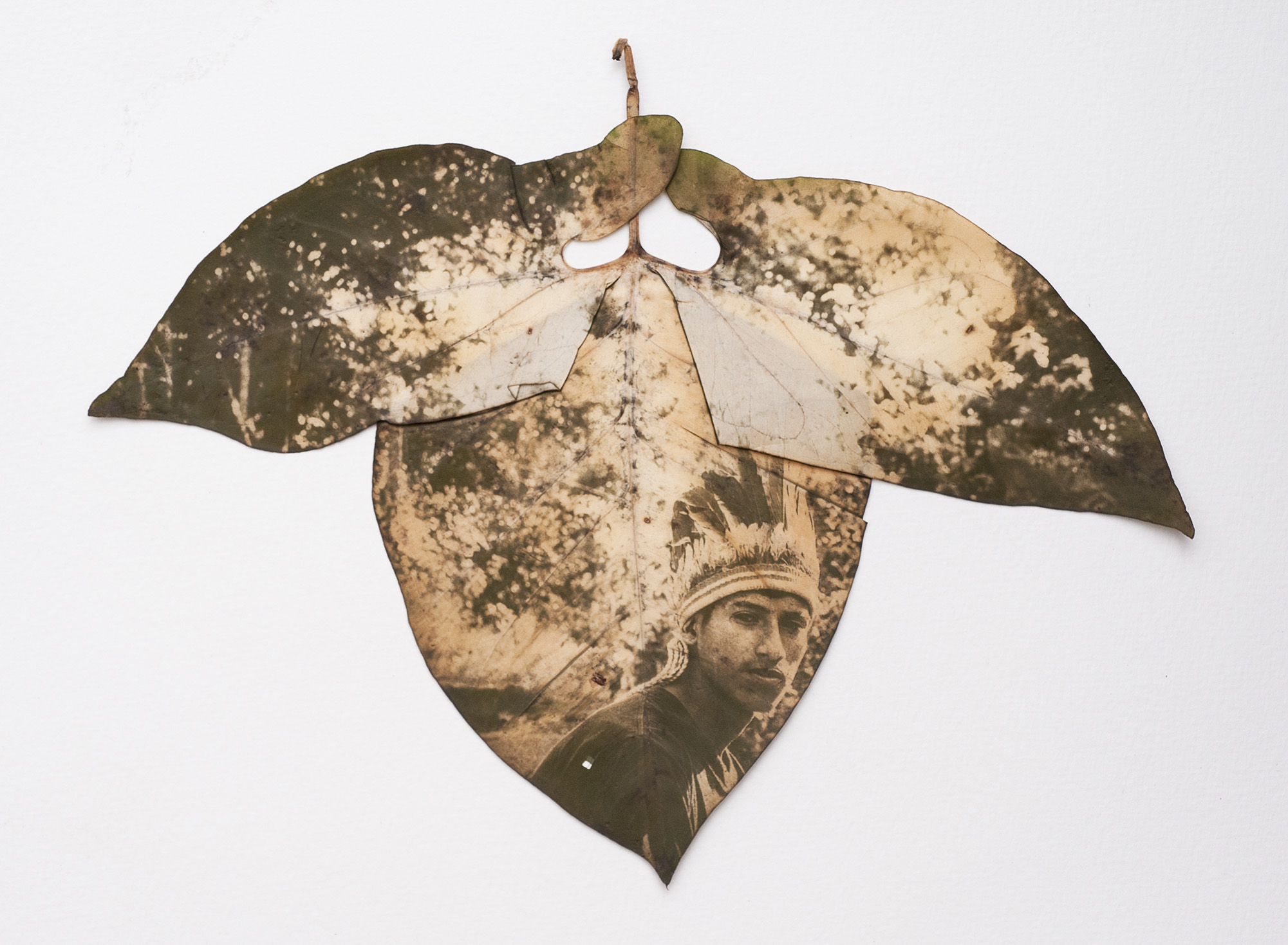 Terra terreno território dá nome ao projeto que utiliza duas técnicas do século XIX para propor uma reflexão sobre ser indígena numa grande cidade. Em busca de uma documentação fotográfica à altura da relevância política e cultural de seu tema, as imagens produzidas se mostram como consequências naturais de quem fotografa ciente de que as experiências cotidianas e as relações interpessoais consistem em algo muito mais importante do que as próprias fotografias que podem ser dali extraídas. Capturadas digitalmente, as imagens foram impressas em transparências, gerando grandes negativos colocados em contato direto com dois tipos de suportes: papéis de algodão sensibilizados por uma emulsão à base de jenipapo (fruto que também é usado para a pintura corporal dos indígenas), e em folhas de plantas, processo este conhecido como fitotipia. Ambos os procedimentos exigiram longos períodos de exposição ao sol – dias, às vezes, semanas – permitindo a construção artesanal das impressões sob uma temporalidade impensável para a prática fotográfica vigente, baseada na ferocidade do click, share & like. A opção por tais formatos definiu a estas imagens uma dimensão material extremamente frágil, que as distanciam da longevidade dos sais de prata dos filmes fotográficos ou dos bytes dos arquivos digitais. Como espécies de “fotografias orgânicas”, estas imagens estão destinadas ao desaparecimento, pois tendem a se deteriorar rapidamente sob a ação da luz. Sendo permitido a elas, portanto, uma “morte”, seriam elas mais “vivas” que as fotografias normalmente arquivadas como documentos iconográficos? Frágeis enquanto indícios perenes, tais imagens parecem convocar com mais força nossa sensibilidade e nossos olhares para o tempo presente destas comunidades, exigindo uma reflexão a respeito da responsabilidade que nos cabe frente à construção desta história que está em andamento. A ligação dos indígenas com a terra, com a mata e com os ciclos da natureza é muito presente, mesmo dentre os que estão na cidade há bastante tempo. Assim, a escolha do uso da própria planta e dos pigmentos naturais como suporte nesse processo é quase ritualístico, e remete também aos fazeres manuais e mergulho nos processos, tão importantes nessas comunidades. Como a natureza -onde tudo se transforma -esses processos produzem imagens vivas, já que as folhas sofrem interferências com a passagem do tempo –referência a permanente transformação que a cultura indígena também vive –cultura que não ficou congelada no tempo de 500 anos atrás. A proposta favorece a discussão acerca da fotografia e de seu caráter de memória e documento como algo imutável, ampliando seus contornos e podendo se vincular ao documental de forma bem mais subjetiva.